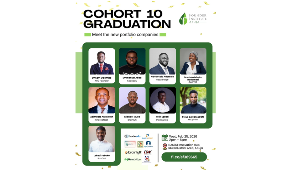 The Founder Institute (FI), the world’s largest pre-seed startup accelerator, celebrated the graduation of 9 companies from its Abuja Cohort 10, founded by 10 entrepreneurs on February 25, 2026.